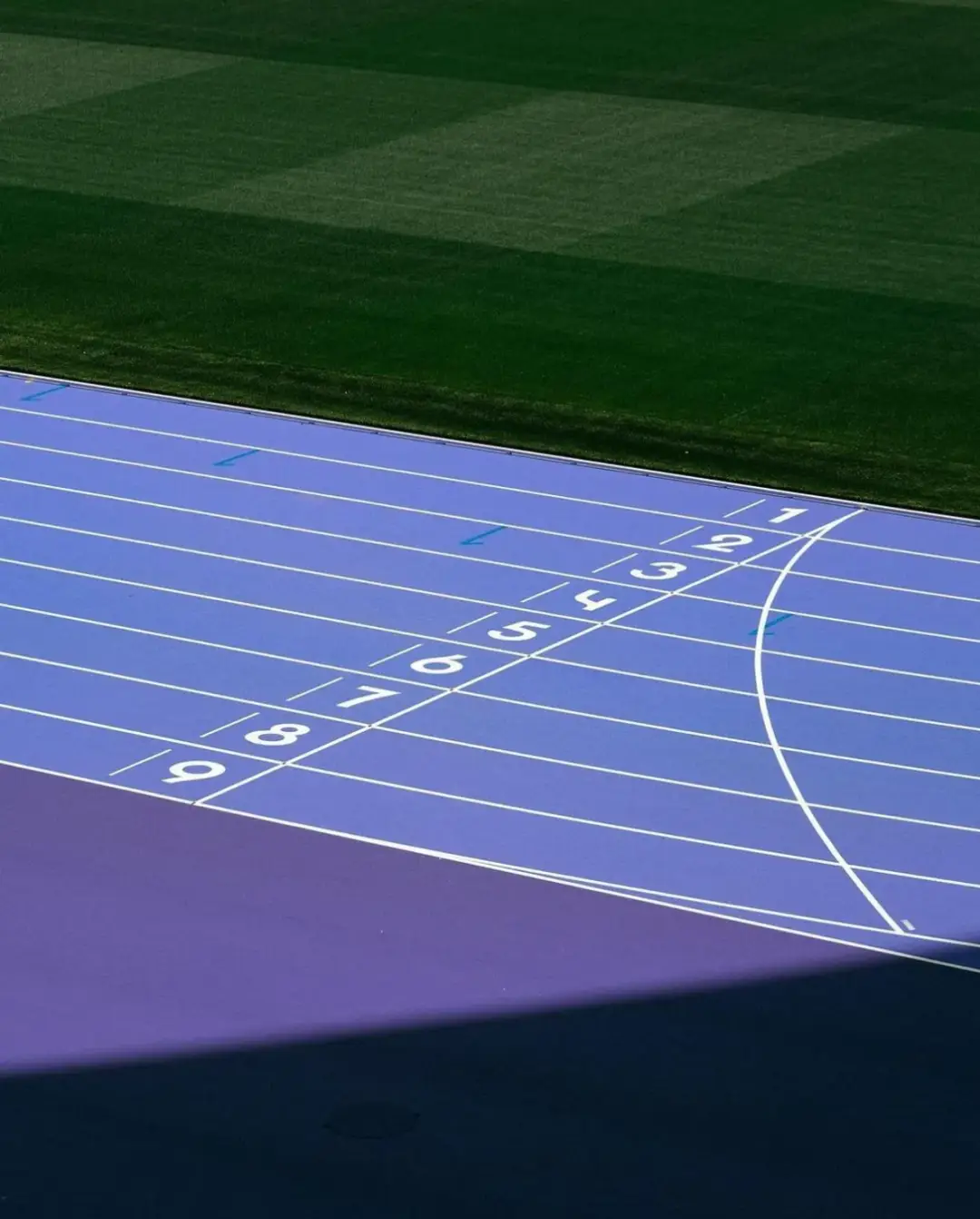 Beneath the purple lies a rubber track with two layers. The lower level has honeycomb cells that effectively absorb and feed back the energy, achieving the ideal balance of firmness and softness. The use of polyurethane ensures the track’s stability and durability, enabling it to withstand high-intensity use and harsh weather conditions.