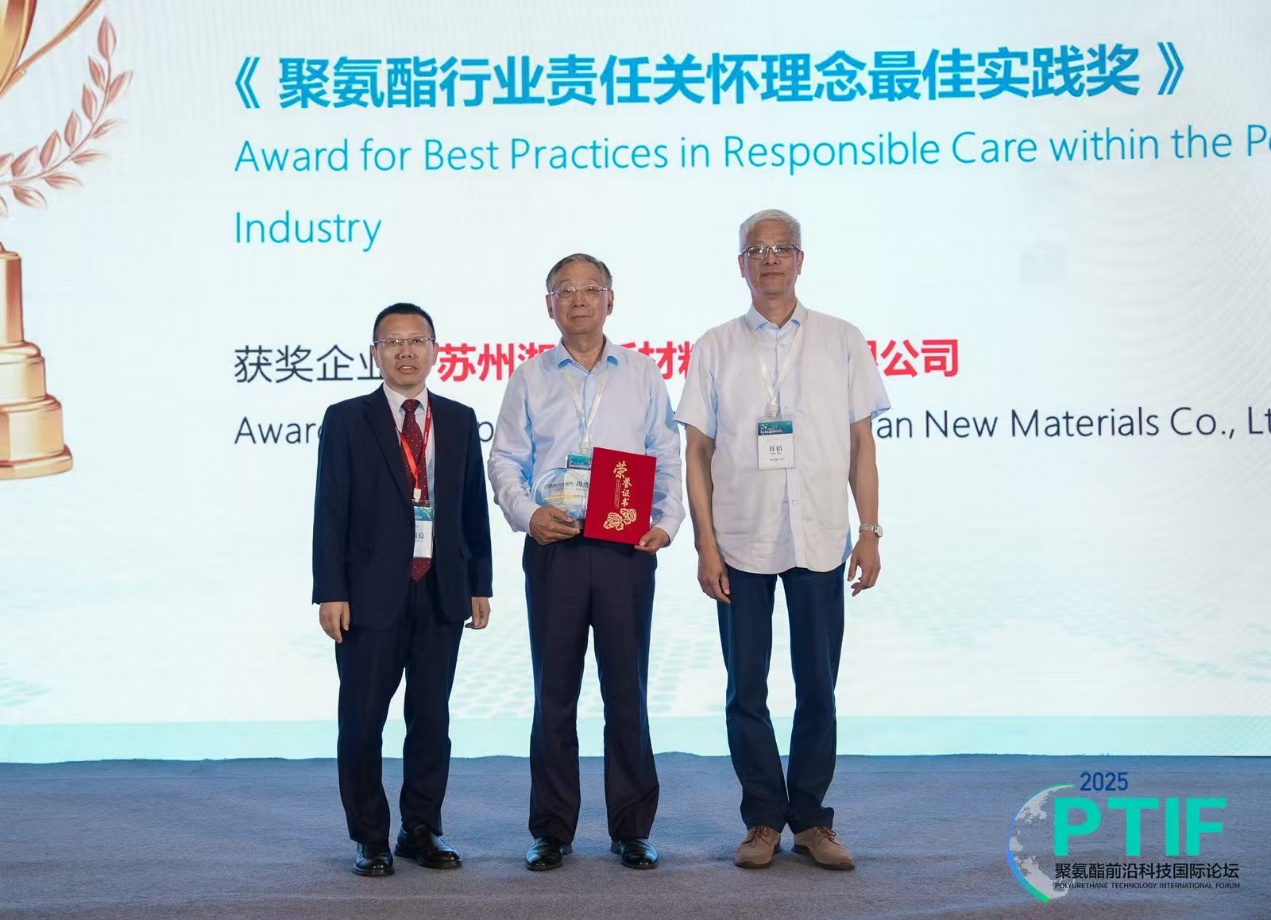 At the 2025 International Forum on Polyurethane Frontier Technology, Suzhou Xiangyuan New Materials Co., Ltd. won the "2025 Best Practice Award for Responsible Care Concept in Polyurethane Industry" by virtue of its excellent achievements in the practice of responsible care concept.