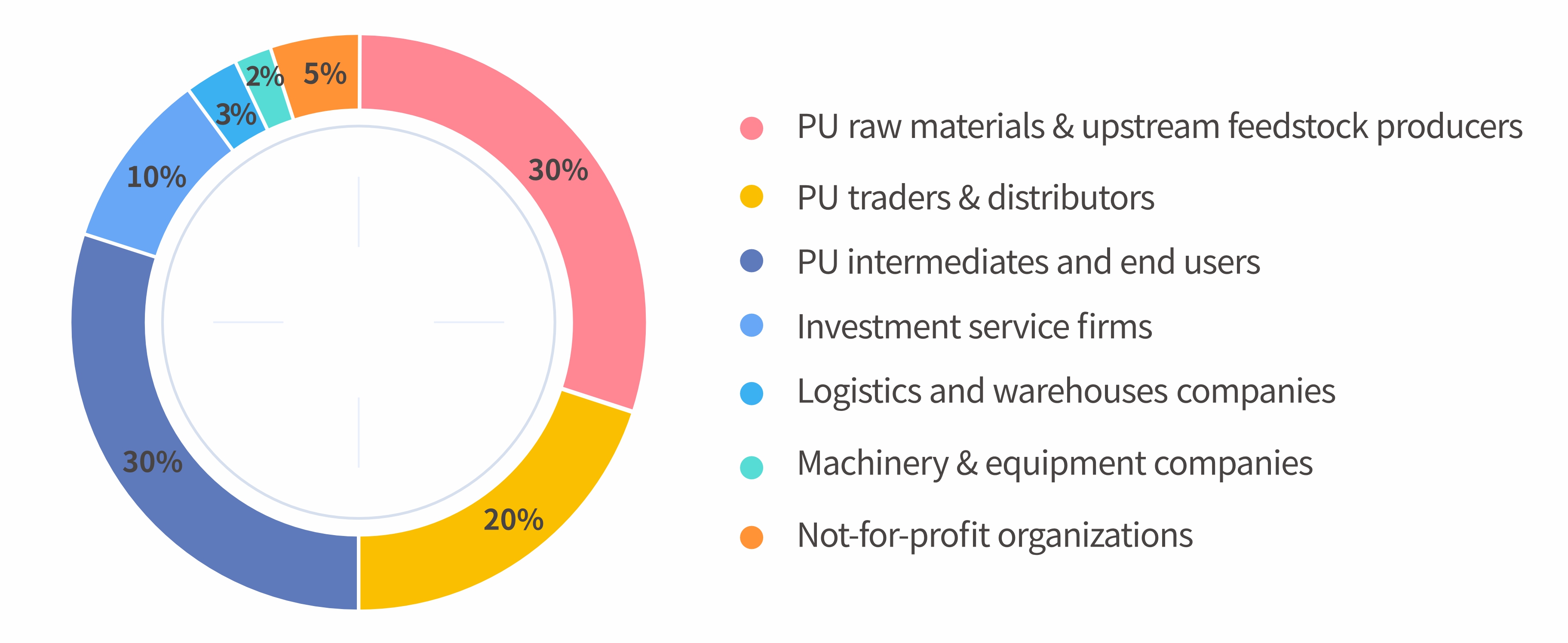 Our customers include polyurethane raw materials & upstream feedstock producers, polyurethane traders & distributors, polyurethane intermediates and end users, machinery & equipment companies, logistics and warehouses companies, investment service firms, not-for-profit organizations.