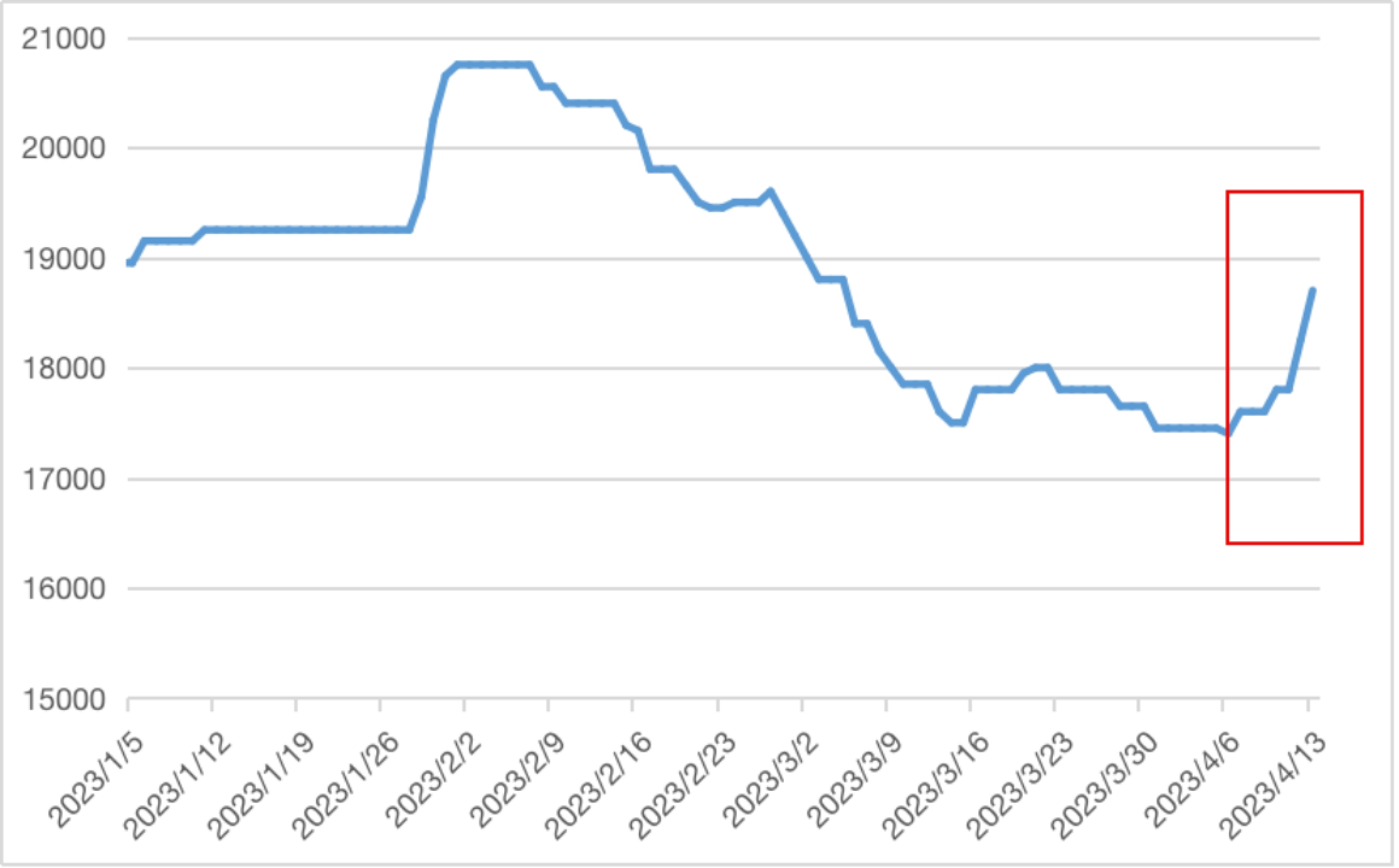China’s TDI market has rebounded rapidly since last Thursday. As of April 13, TDI prices in East China stood around CNY 18,400-19,000/tonne, an increase of over CNY 1,000/tonne compared to last week.