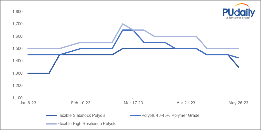 Price Trend of Polyether Polyols in the Middle East in 2023 (USD/tonne)