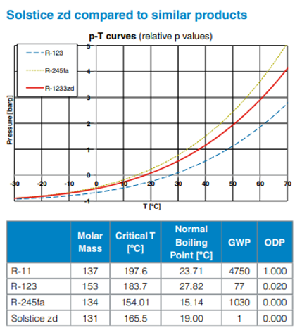 Honeywell’s product specifications reveal that their fourth-generation product Solstice zd (HFO-1233zd) has a GWP value of only 1, which is more than a thousand times lower than its 245fa counterpart.