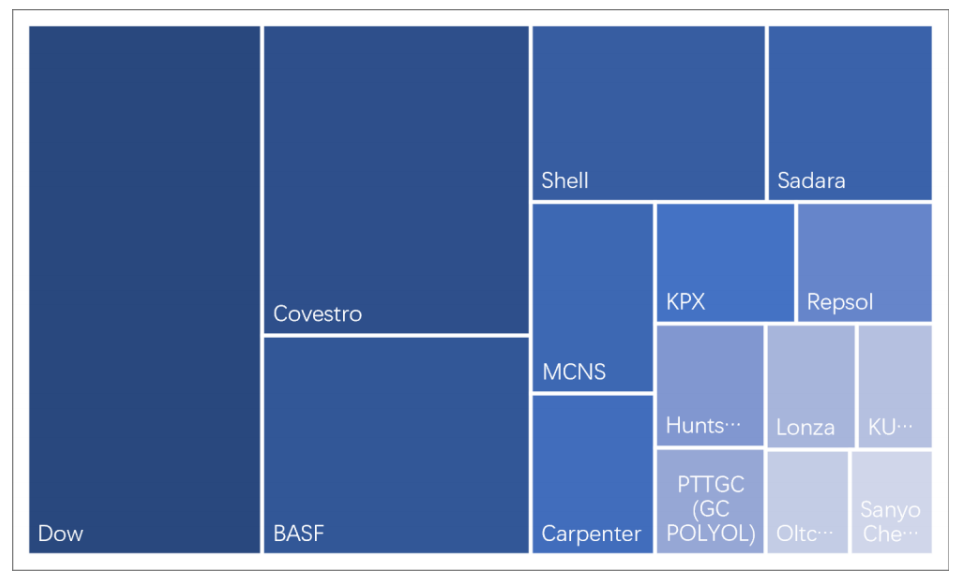 Although there are many polyether polyol production plants in the world and they are widely distributed, there are still a few manufacturers occupying most of the production capacity, and many small manufacturers coexist. In addition to China, the production capacity of large multinational companies such as Dow, Covestro, BASF, and Shell accounts for 1/3~1/2 of the global total production capacity.