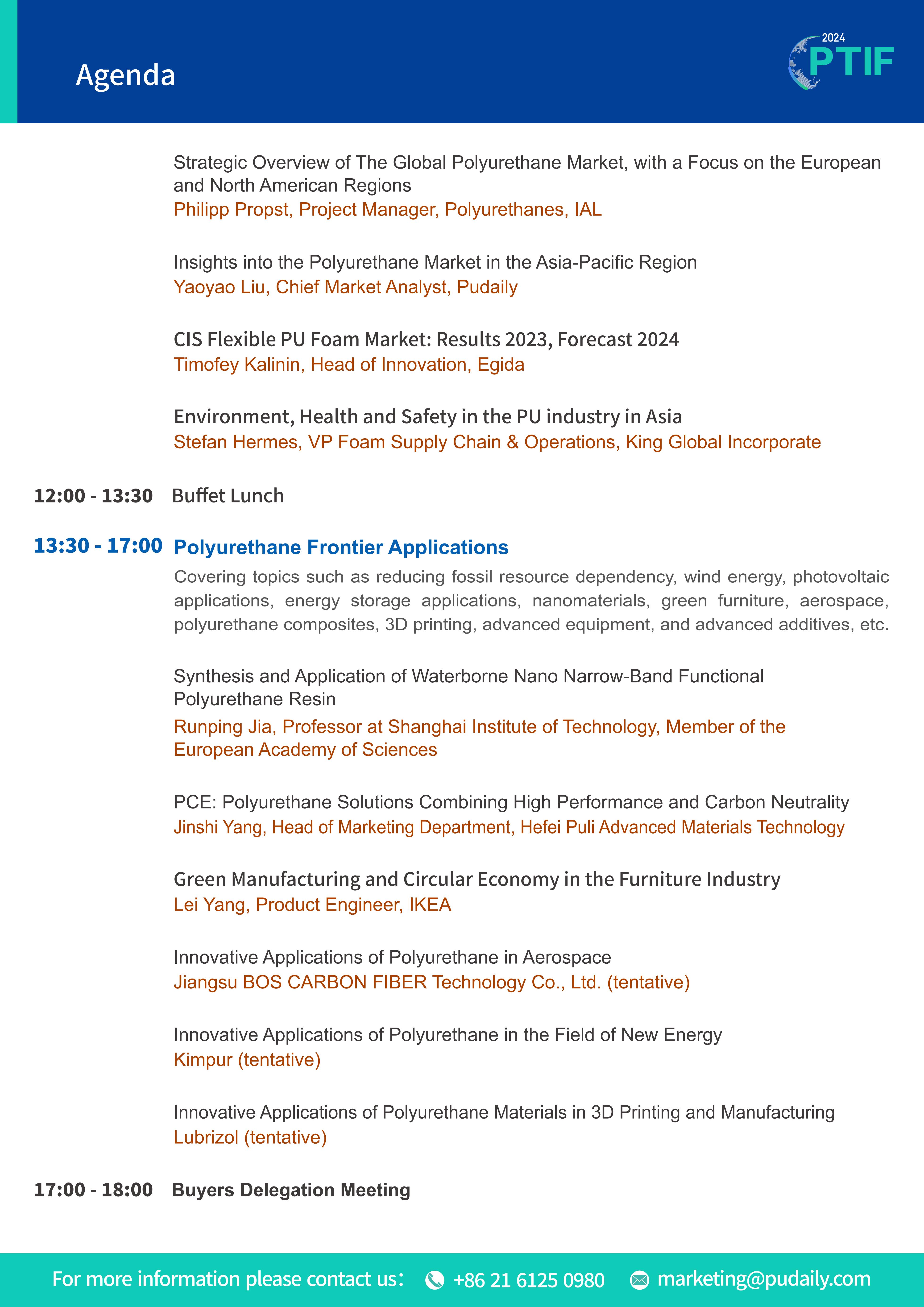 This product showcase event will feature industry experts and leading corporate representatives sharing insights into polyurethane product manufacturing techniques, application scenarios, and emerging technology developments. Attendees will have the opportunity to engage in face-to-face discussions with representatives, gaining deeper insights into market dynamics, technological advancements, and potential collaboration opportunities.