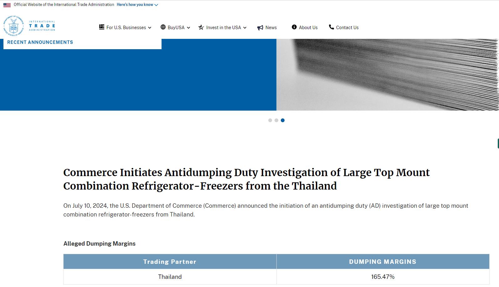 Source: U.S. Department of Commerce - Bureau of International Trade Administration
