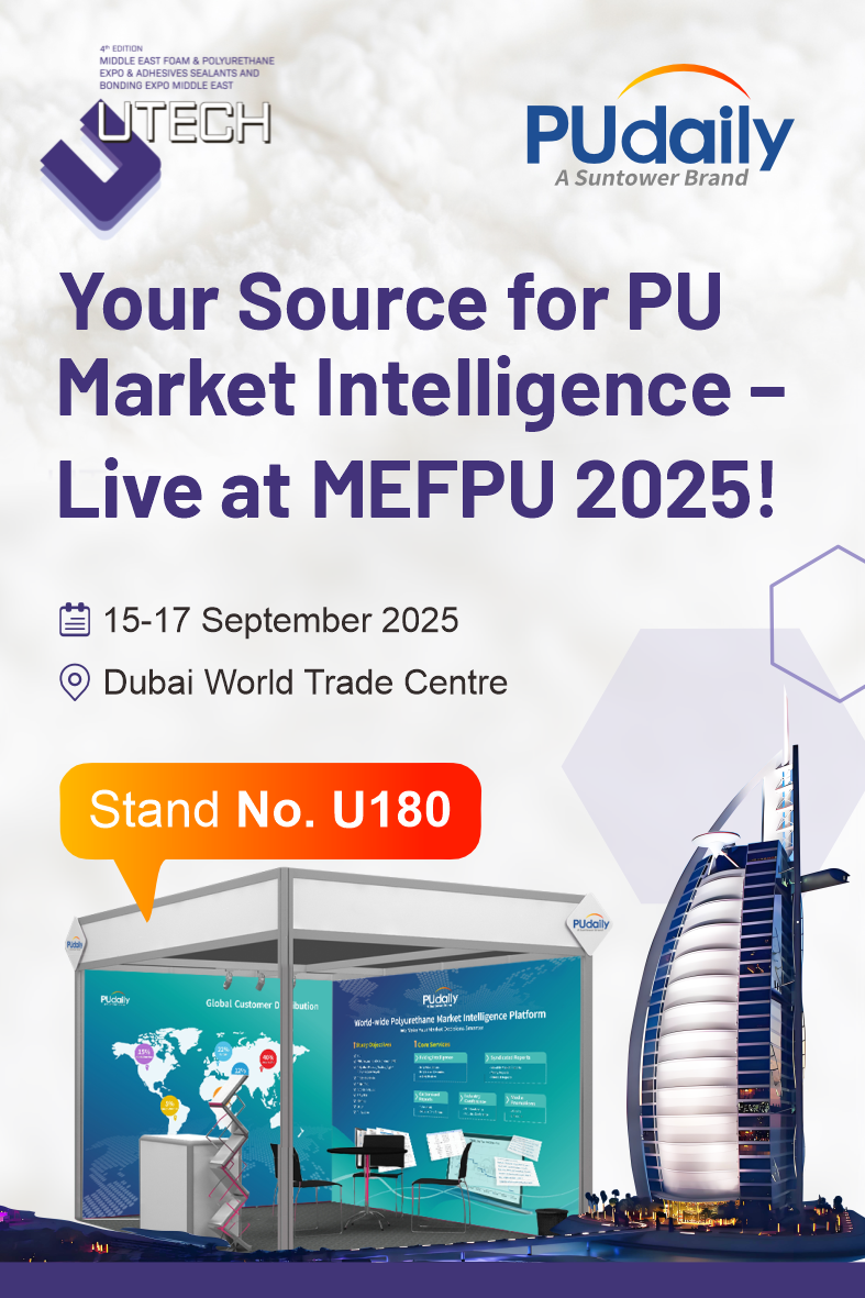 PUdaily, the leading global platform for polyurethane market intelligence, is excited to announce its participation in the 4th edition of UTECH Middle East Foam & Polyurethane and Adhesives, Sealants & Bonding (ASB) Expo, taking place 15–17 September 2025 at the Dubai World Trade Centre.