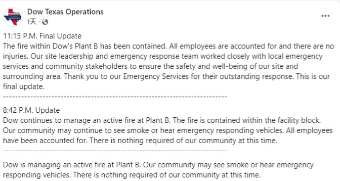 Despite the scale of the site and the potential risks associated with handling complex chemical procsses, Dow emphasized that its emergency responseteams acted promptly and effectively. The company expressed gratitude to on-site safety personnel and local emergency responders who worked together to contain the fire and prevent it from spreading beyond the affected block.